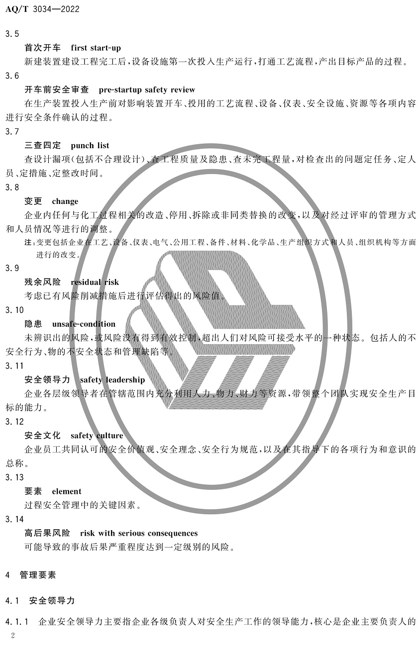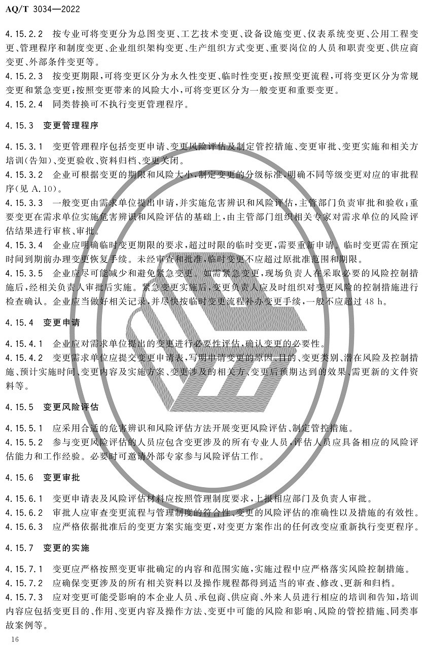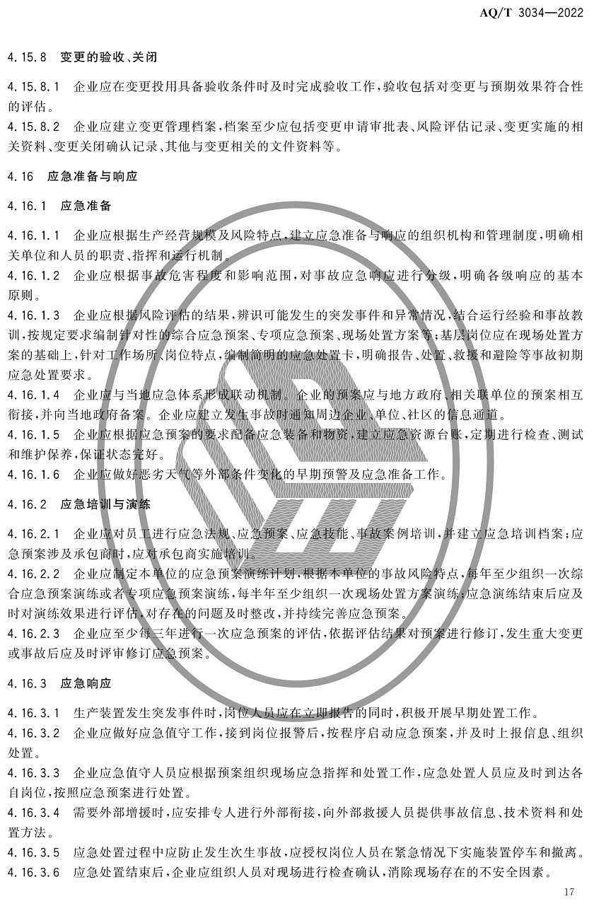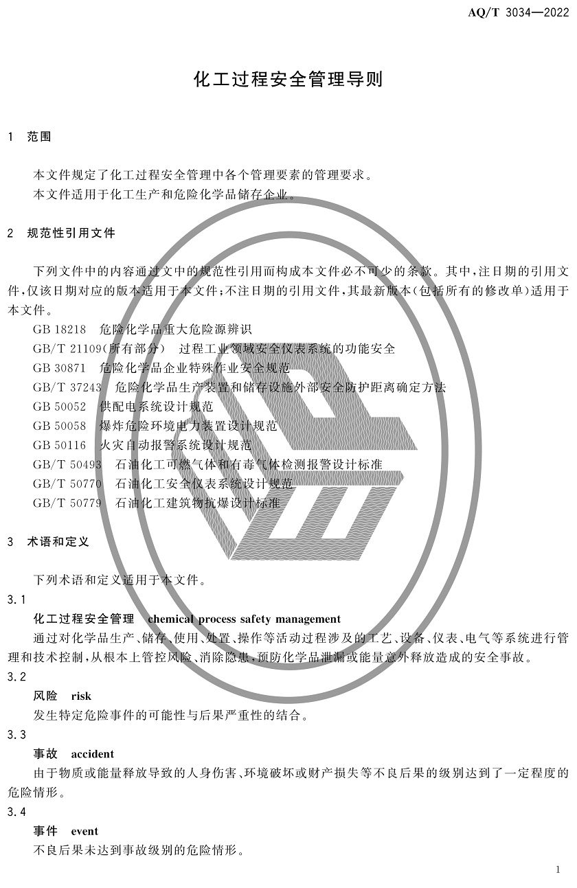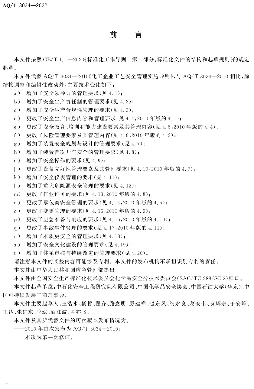 中華人民共和國安全生產行業(yè)標準|AQT3034-2022化工過程安全管理導則全文