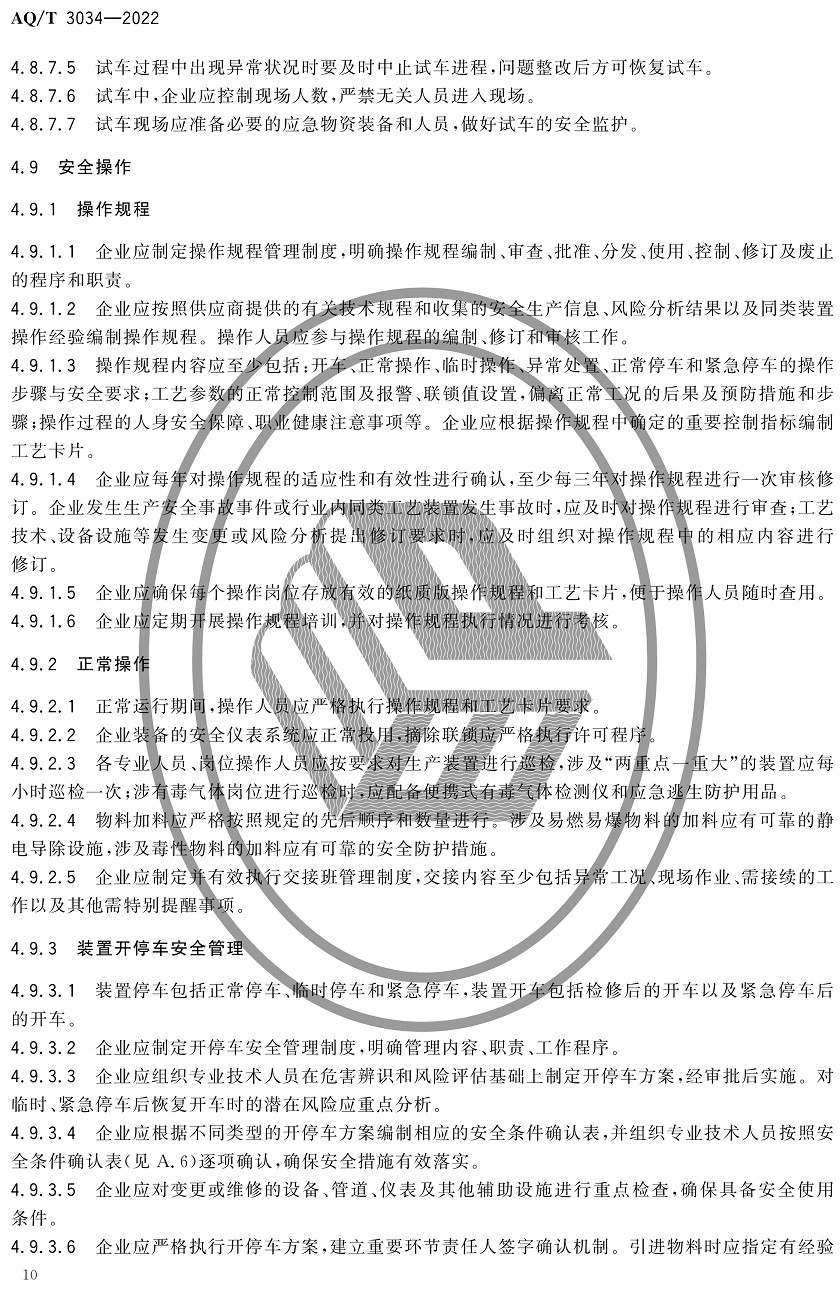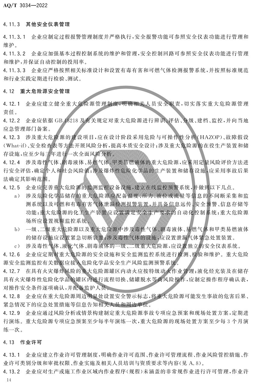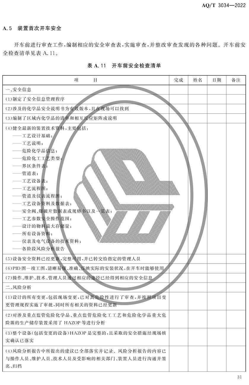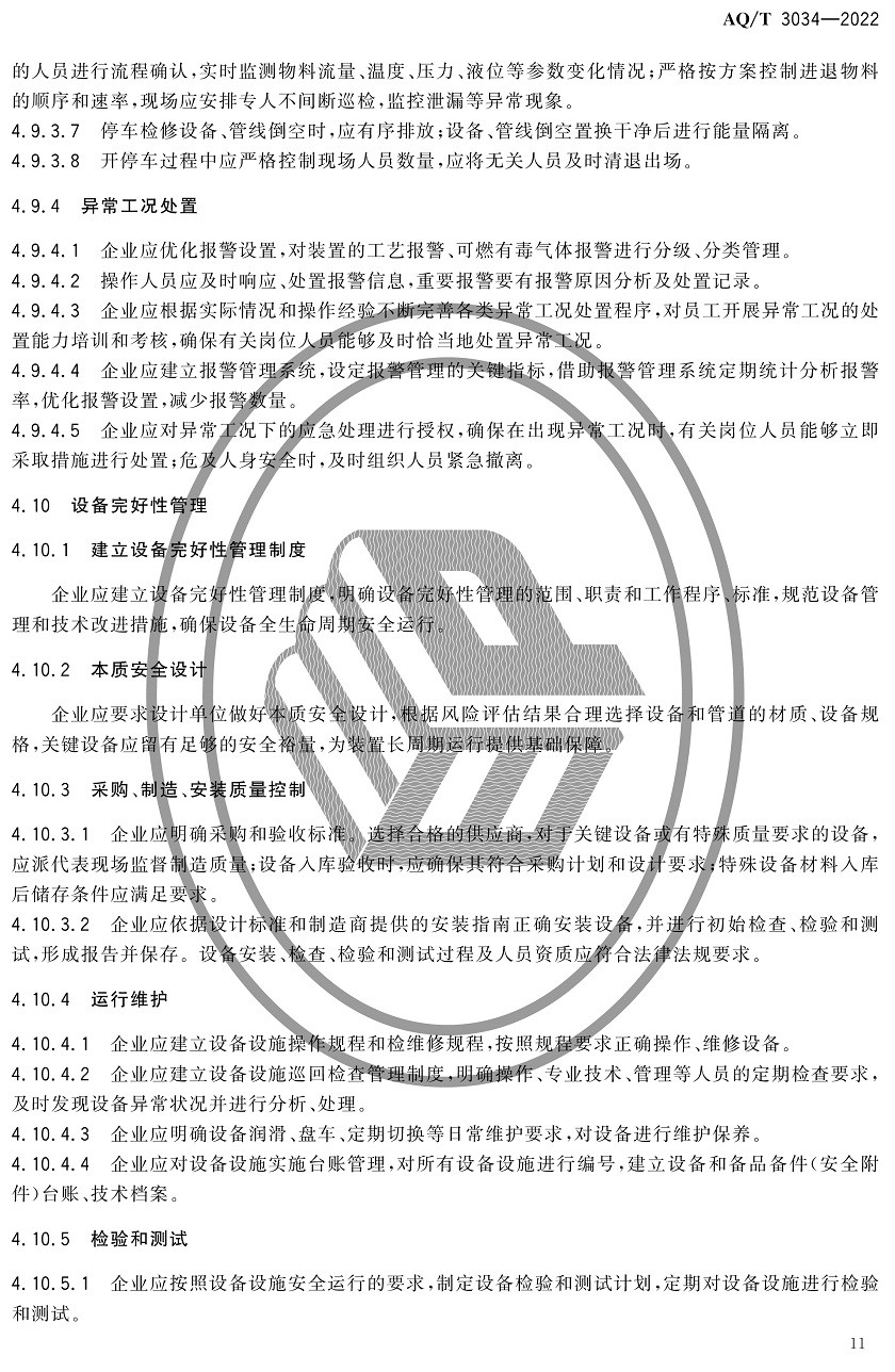中華人民共和國安全生產行業(yè)標準|AQT3034-2022化工過程安全管理導則全文
